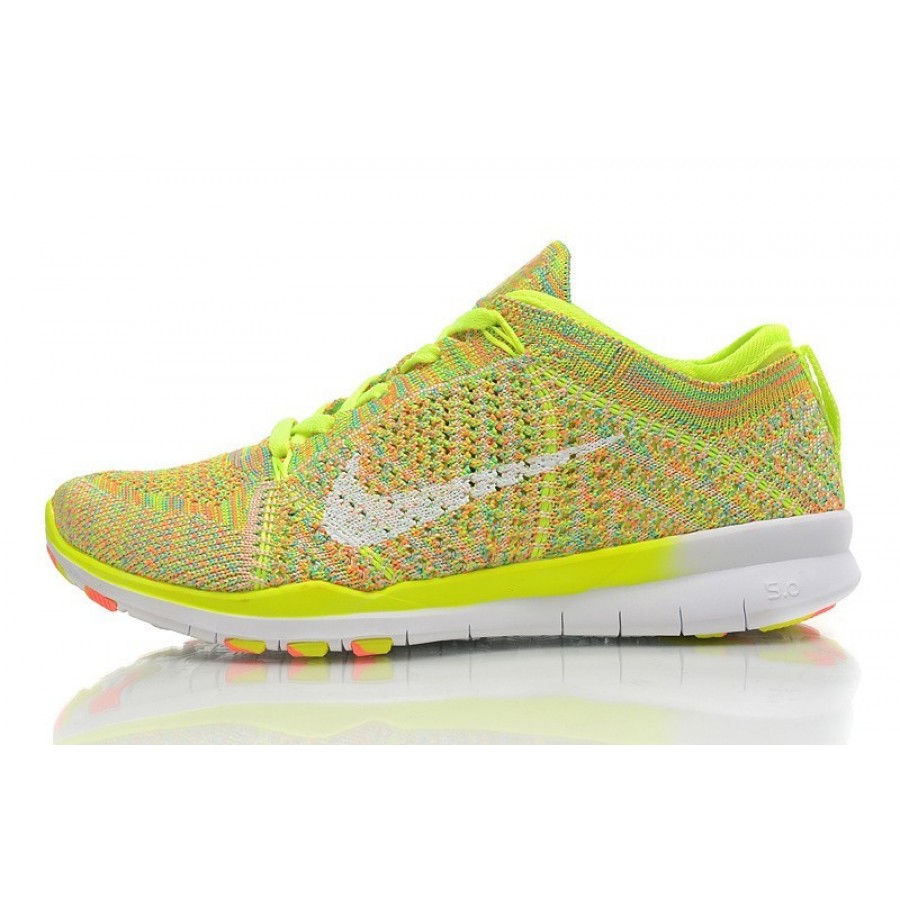 Damen Nike Free 5.0 TR Flyknit Training Schuhe Volt/Hot Lava/Weiß 718785-700